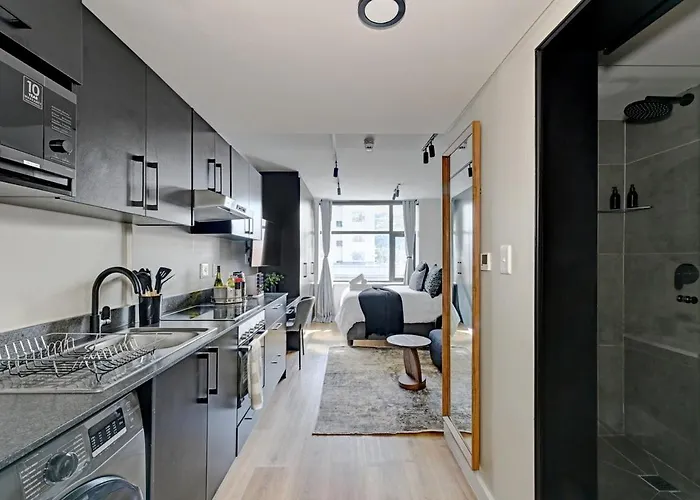 The 1-room Ayla - Comfy Studio In The Heart Of Cpt Cape Town is situated in the centre of Cape Town, within 5 minutes' walk of the Saint Georges Mall. The apartment is situated just 0.6 km from Cape Town train station and right near Strand bus station.
